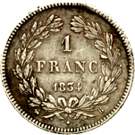 Al Dritto è raffigurato il busto del Re Carlo X di Francia, volto verso sinistra. Lungo il contorno si trovano l'iscrizione circolare "CHARLES X ROI DE FRANCE." e, in basso, la firma dell'incisore "MICHAUT." con sottostante il simbolo dell'incisore capo; più all'esterno è presente una serie di punti. Al Verso si trovano al centro lo stemma coronato della casata dei Borbone, a sinistra la scritta indicante il valore "1" e a destra la lettera "F" (la seconda parte dell'indicazione del valore), il tutto racchiuso da una corona formata da due rami di alloro. In basso, al di fuori della corona, è presente il millesimo di conio con a sinistra il simbolo del direttore della zecca e a destra il segno di zecca, il quale può essere relativo ad una delle seguenti sedi: