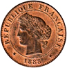 Al Dritto è raffigurato il busto della dea Cerere, volta a sinistra. Lungo il contorno, posti all'interno di una sezione circolare delimitata da una serie di punti, si trovano in alto la scritta circolare "REPUBLIQUE FRANCAISE" ed in basso il millesimo di conio, preceduto e seguito da una stella. Al Verso si trova al centro l'indicazione del valore, "1 CENTIME", posta su due righe, con subito sotto il segno di zecca (racchiuso tra i simboli del direttore della zecca e dell'incisore capo), il quale può essere relativo ad una delle seguenti sedi: