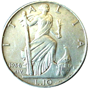 Al Dritto è raffigurato il ritratto del Re d'Italia Vittorio Emanuele III, volto verso destra. Lungo il contorno è impressa l'iscrizione circolare "VITTORIO • EMANVELE • III • RE • E • IMPERATORE". Al Verso è rappresentata una figura femminile (che simboleggia l'Italia marinara), ritta sulla prua di una nave decorata con lo scudo sabaudo coronato e affiancato da due fasci. La figura femminile tiene nella mano sinistra una piccola statua della Vittoria alata e nella mano destra un fascio littorio completo di ascia. Nella parte superiore è impressa la scritta ad arco "I T A L I A", mentre in basso, subito sotto il disegno, si trova l'indicazione del valore "L . 10". Nella parte inferiore, alla destra del valore e adiacente al bordo, si puo notare la firma dell'autore "G . ROMAGNOLI", seguita dal segno della zecca di Roma "R". A sinistra, verso il basso e compresi tra il bordo e l'immagine, sono presenti il millesimo di conio e l'anno dell'era fascista (espresso in numeri romani), scritti uno sotto l'altro.