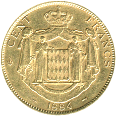 Al Dritto è raffigurato il busto del Principe Carlo III, volto verso destra. Lungo il contorno si trovano l'iscrizione circolare "CHARLES III PRINCE DE MONACO" e, ancor più esternamente, una serie di punti. In basso sono presenti la firma dell'incisore "PONSCARME" ed il segno della zecca di Parigi "A". Al Verso è rappresentato lo stemma del Principato di Monaco, sostenuto da 2 monaci e circondato da un mantello coronato. Nella parte superiore della moneta si trova la scritta circolare indicante il valore "CENT FRANCS", preceduta da un'ancora, mentre il millesimo di conio è posto nella parte inferiore, racchiuso tra i simboli del direttore della zecca e dell'incisore capo. Lungo il contorno si nota una serie di punti.
