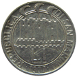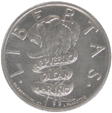 Al Dritto è raffigurato lo stemma coronato di San Marino con le tre torri piumate, al di sotto del quale sono posti rami di ulivo e di quercia. Lungo il contorno è impressa l'iscrizione circolare "REPUBBLICA DI SAN•MARINO", mentre nella parte inferiore è presente la scritta "LIBERTAS". Al Verso, al centro della moneta, troviamo un disegno che rappresenta la minaccia della guerra. L'indicazione del valore (L.1) compare a sinistra mentre il millesimo di conio con subito sotto il segno di zecca "R" sono a destra; in basso si nota la firma dell'autore "A.FABBRI".