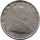 * - di questa moneta è presente una variante con, al dritto, l'iscrizione circolare intera "IOANNES • XXIII • P • M • A • I" preceduta da una stella.